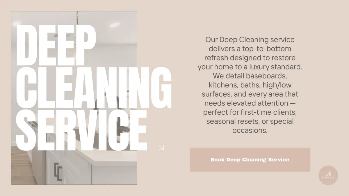 The Foundation -- Deep Clean Service from B. Clean & Co. is a meticulous, top-to-bottom home revitalization designed for clients who expect excellence, integrity, and a pristine living environment. This is our most comprehensive and detail-oriented service—crafted for homeowners and luxury renters who want their space restored to a flawless, move-in–ready condition.